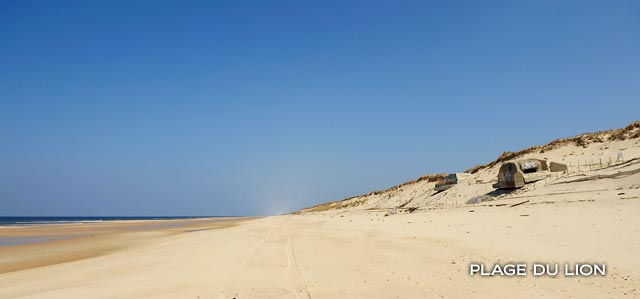 La plage du Lion est sans aucun doute la plus intéressante des plages de Lacanau, car c'est aussi l'emplacement de la fortification AR-14 du Mur de l'Atlantique, la seule qui ait échappée à la destruction et qui reste en assez bon état de conservation, avec un blockhaus de type 502 et un 667